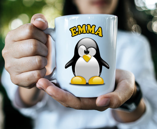 Penguin Name Mug - Personalised Ceramic 11oz Volume