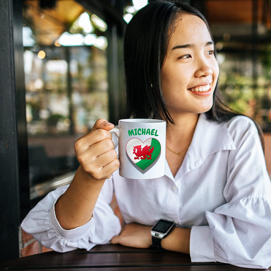 Welsh Dragon Wales Rugby Mug - 11oz Personalised Ceramic Cup - Add Any Name - Gift for Rugby Fans