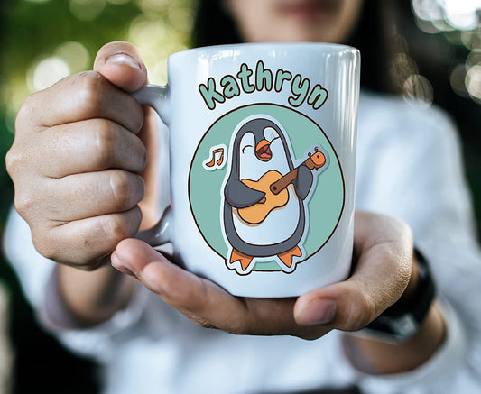 Penguin Playing a Ukulele Personalised Coffee Mug
