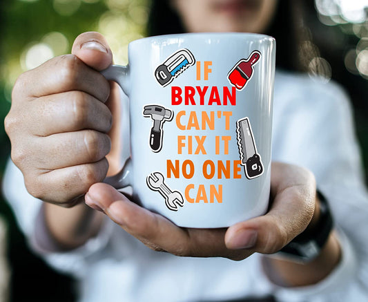 If (Name) Can't Fix It No One Can Personalised Mug for Handymen, builders, carpenters, painters, mechanics 11oz Dishwasher & Microwave safe